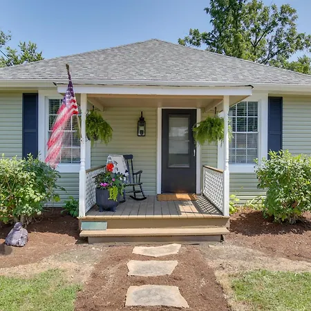 Die Charming Defiance Vacation Rental On Katy Trail! ist mit einer Mikrowelle, einem Kühlschrank und Küchenutensilien für die Selbstversorgung in einen Essbereich im Freien ausgestattet.